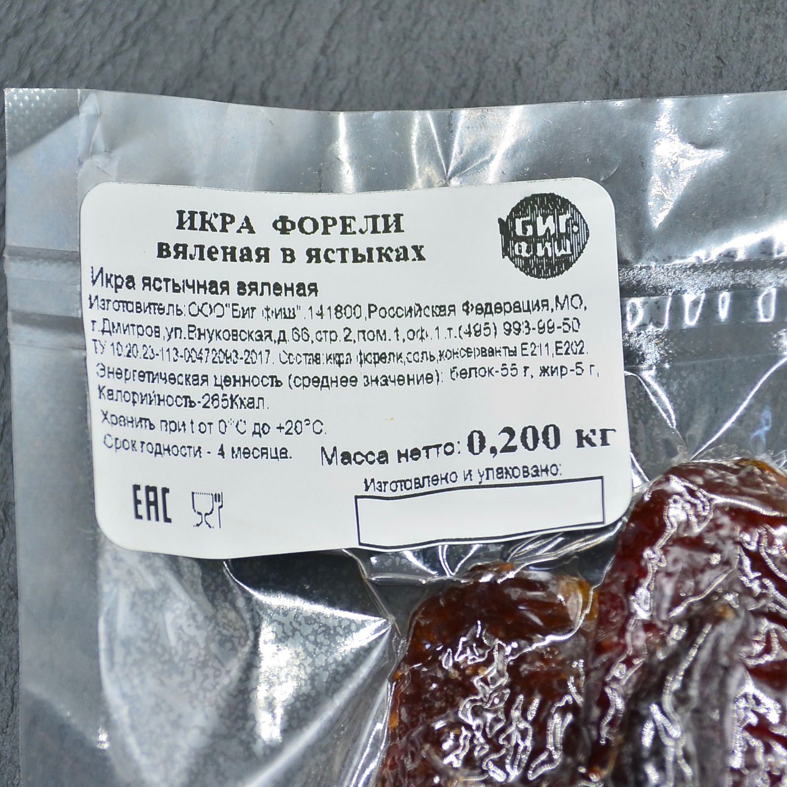 В продаже: от упаковки 200 г (поштучно). Изготовитель: ООО "Биг Фиш", г. Дмитров.