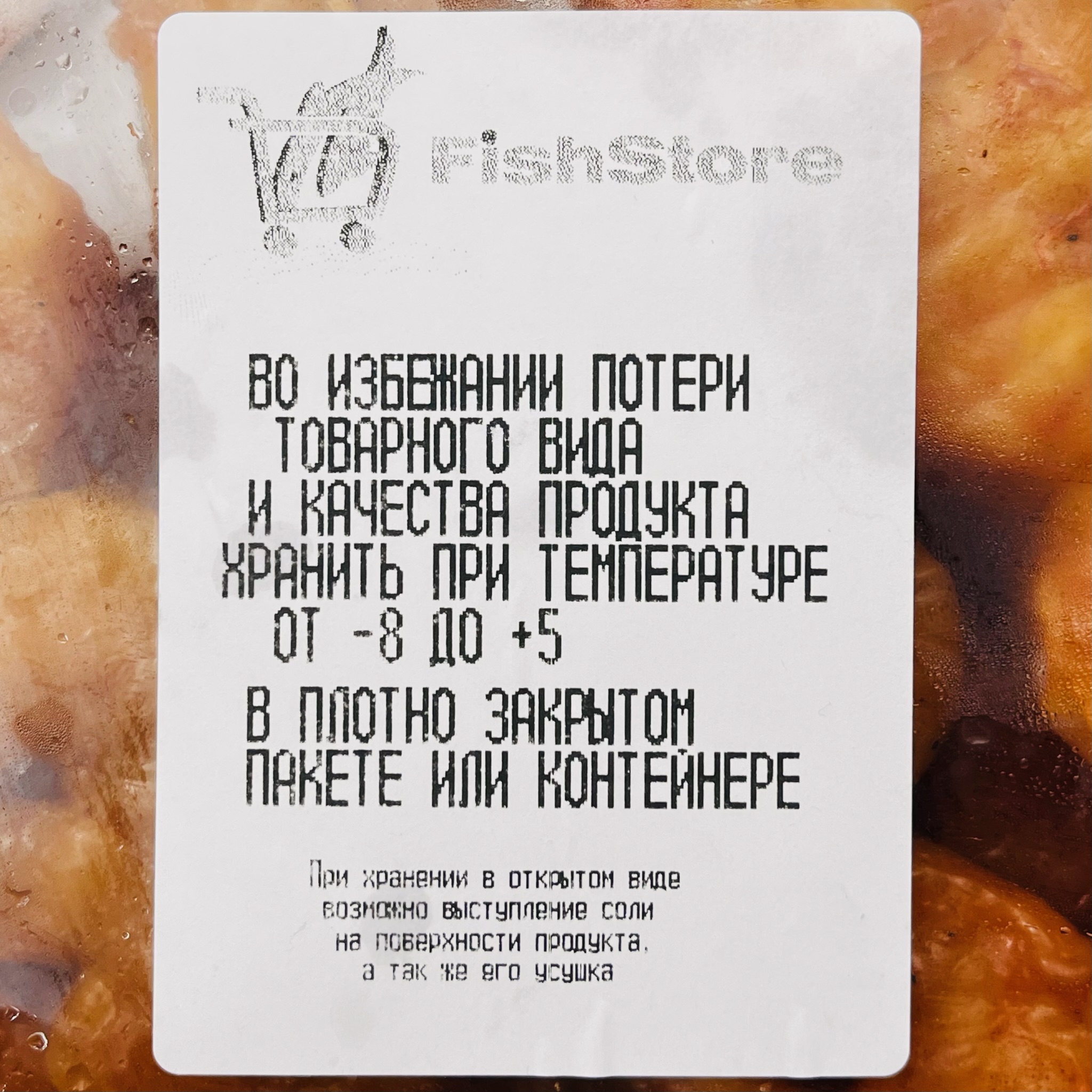 Во избежании потери товарного вида и качества продукта хранить при температуре от -8 до +5 *С в плотно закрытом пакете или контейнере. При хранении в открыом виде возможно выступление соли на поверхности продукта, а также усушка.