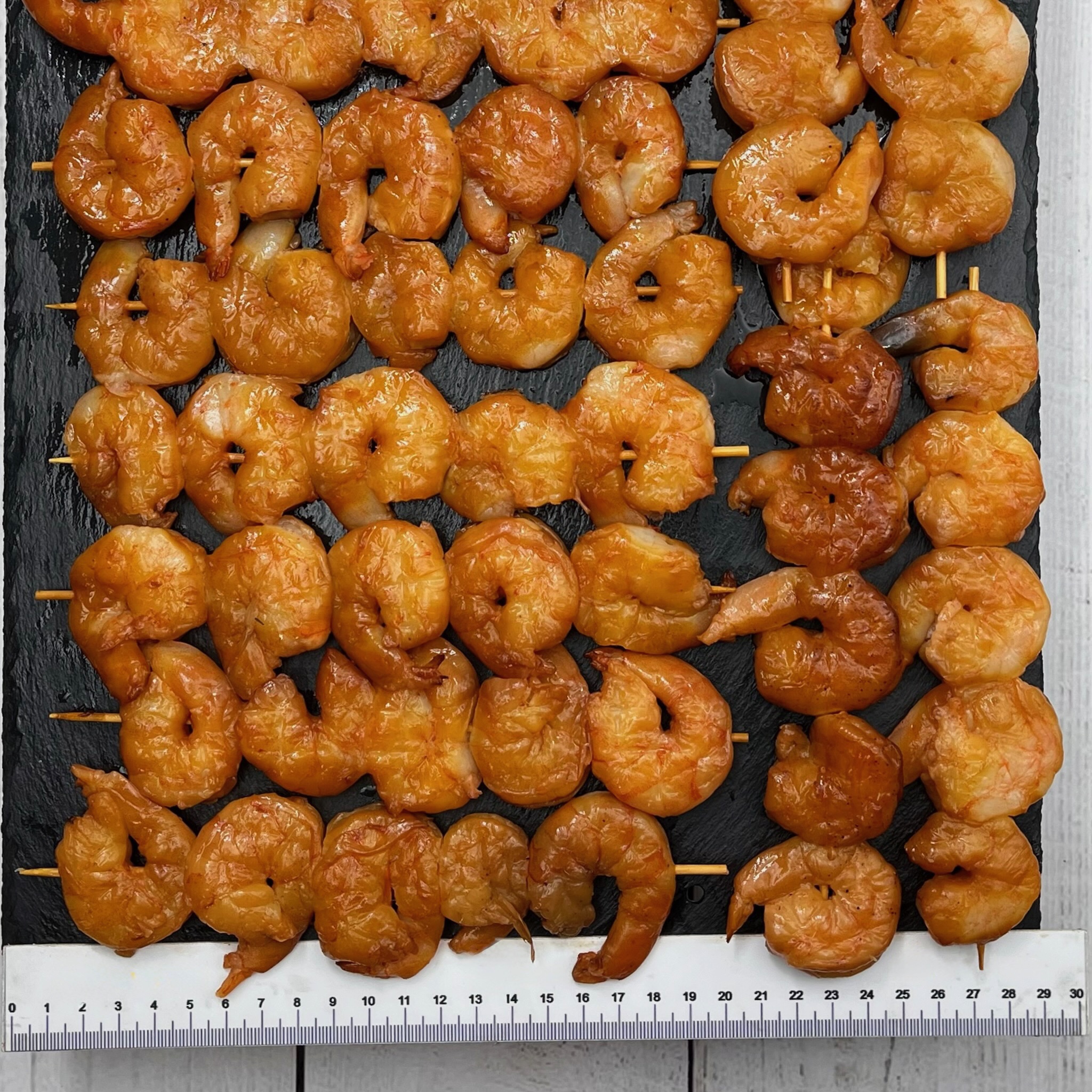 1 креветка ~ 3-4 см. В 1 шпажке (20 см) около 5 шт.