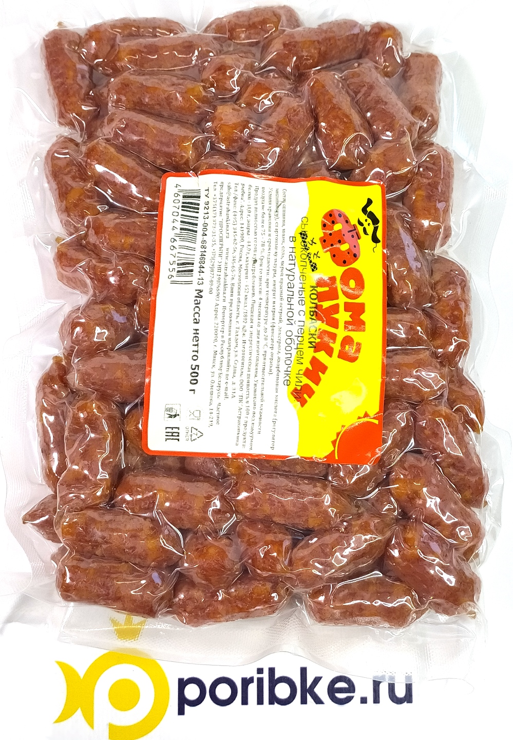 Колбаски сырокопченые с перцем чили в натуральной оболочке.