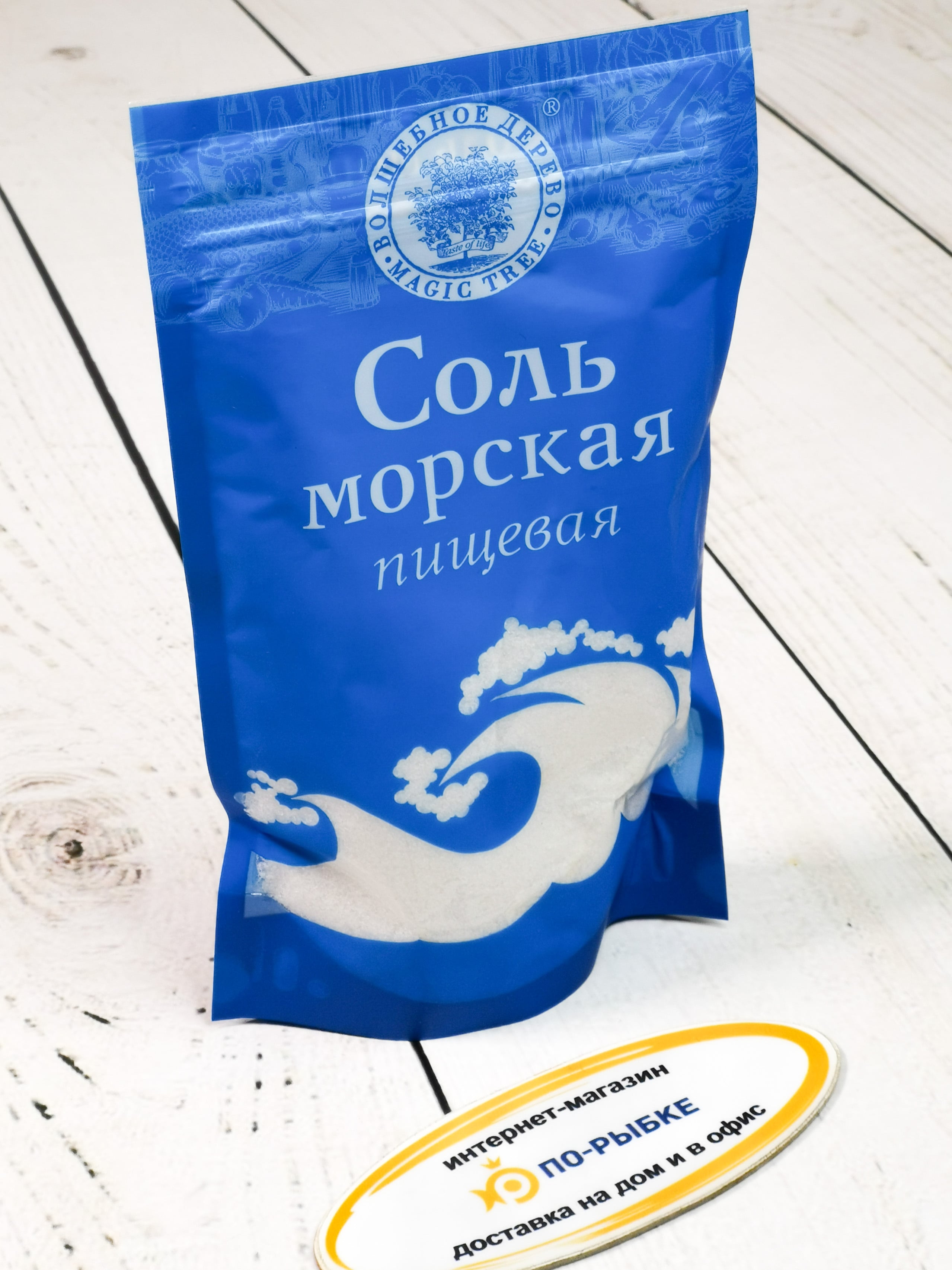 Состав: соль морская садочная (хлористый (NaCl)), массовая доля не менее 99,5%; антислеживающий агент Е535 (для помола №0), массовая доля до 0,001%).