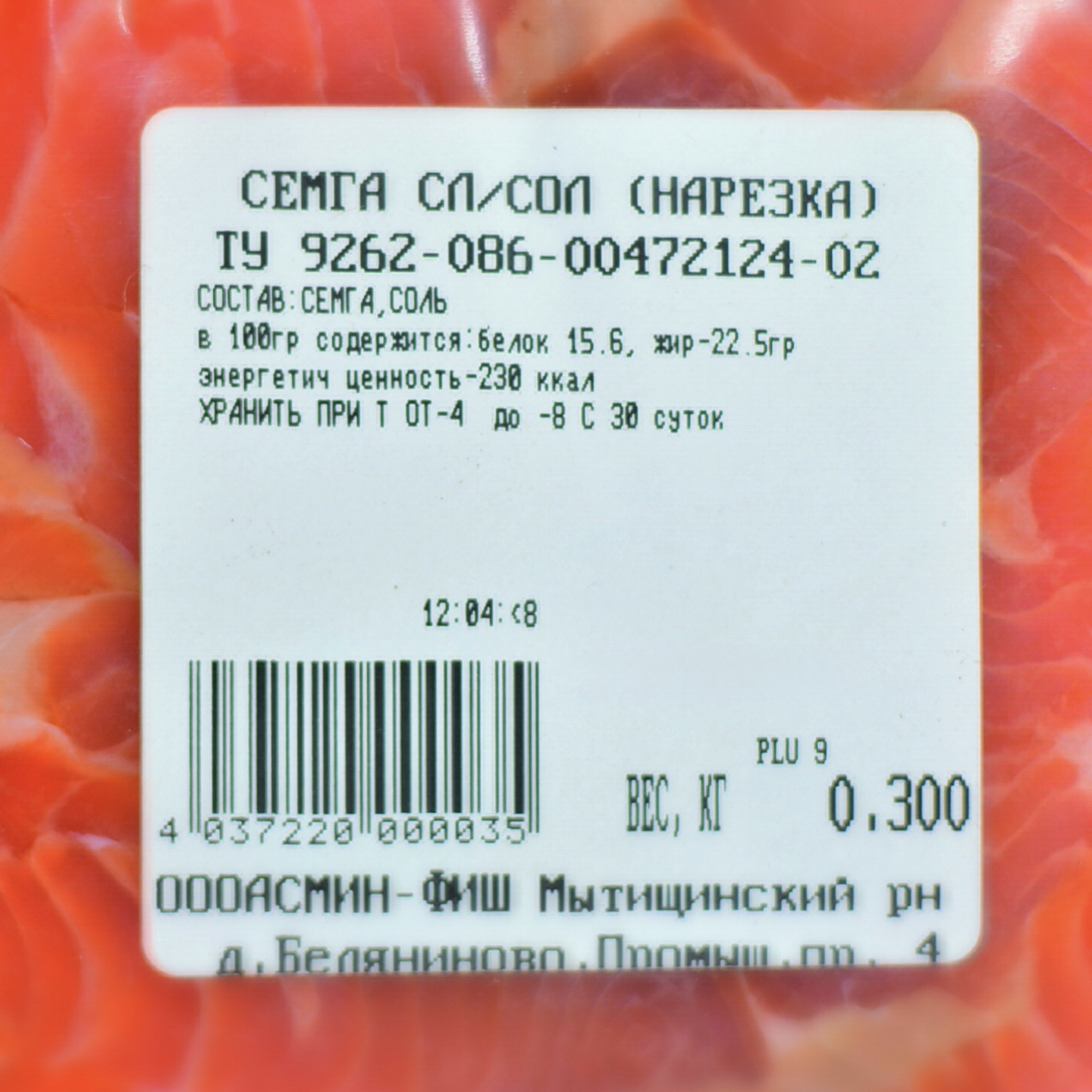Цена за 300 г/уп. Производитель "Асмин-Фиш". Упаковано под вакуумом на подложке.