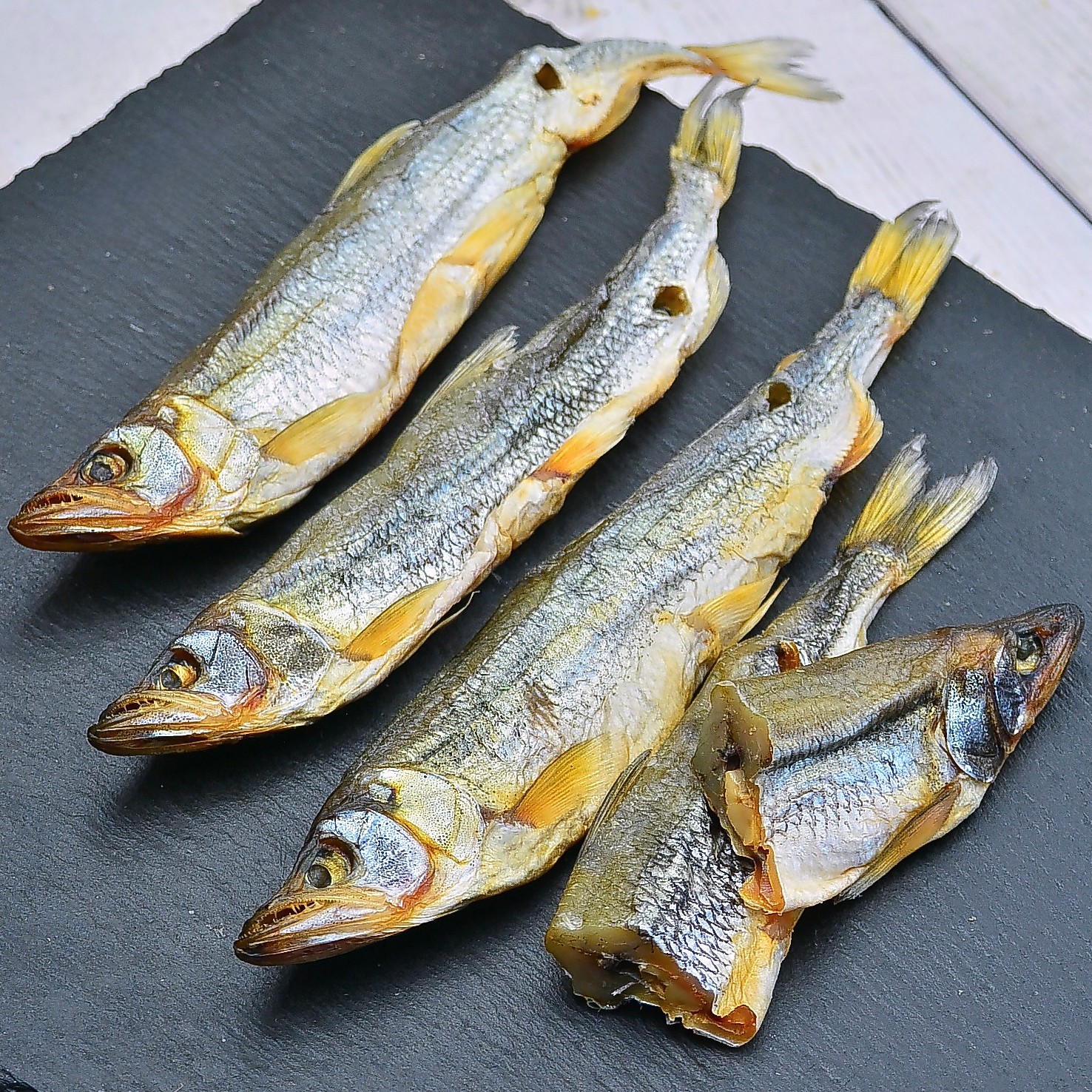 Крупная корюшка весом 70–100 г — это максимум мяса и сочности. Благодаря правильному вялению рыбка сохраняет янтарный цвет и полупрозрачную текстуру, которая буквально тает во рту.