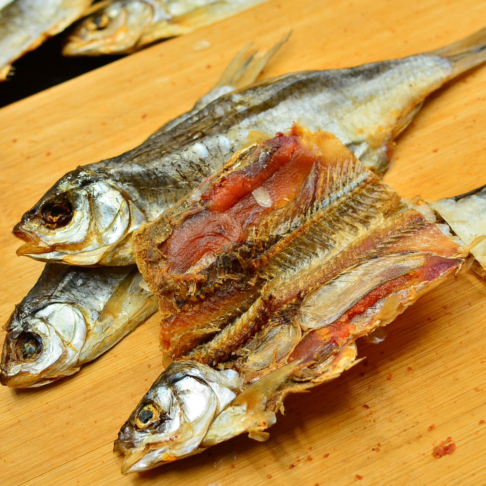 Чистый состав: Только рыба и соль. Мы не используем консерванты или усилители вкуса — натуральный продукт в его лучшем проявлении.